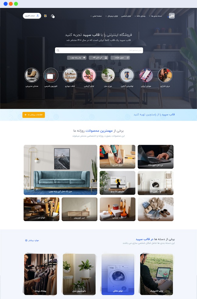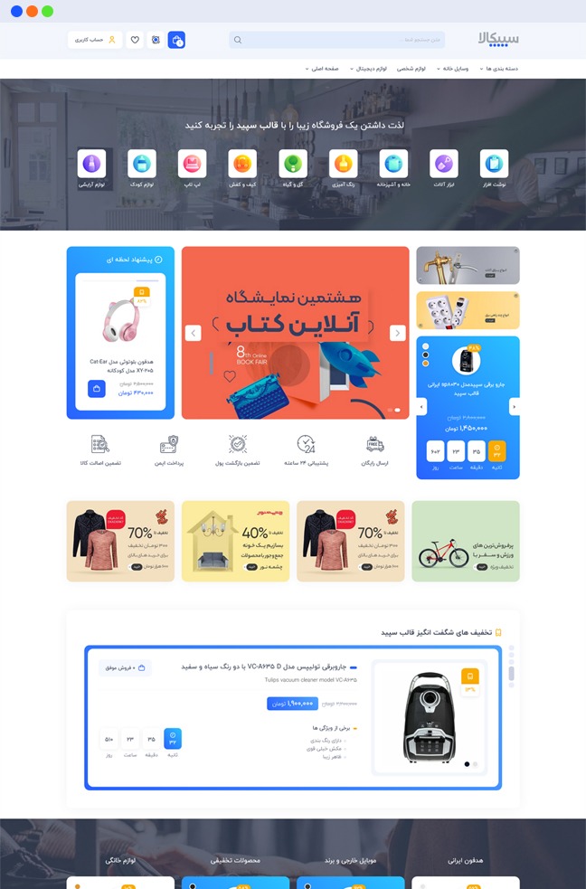 قالب فروشگاهی سپید یک قالب کاملا ایرانی است که دارای امکانات بی نظیری برای ساخت فروشگاه اینترنتی می باشد
